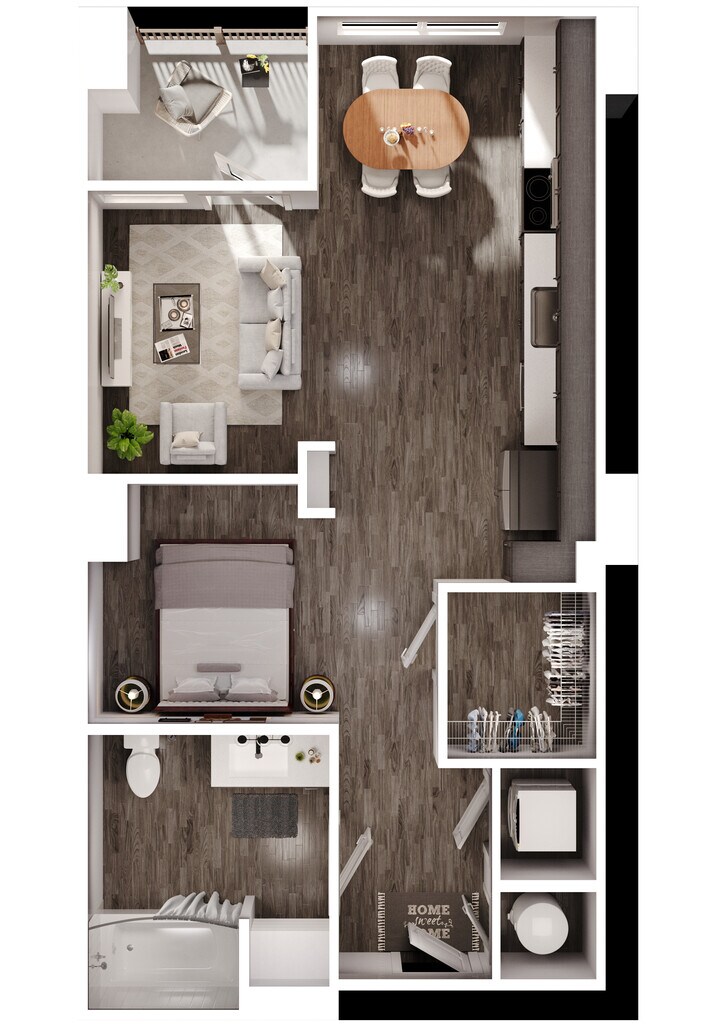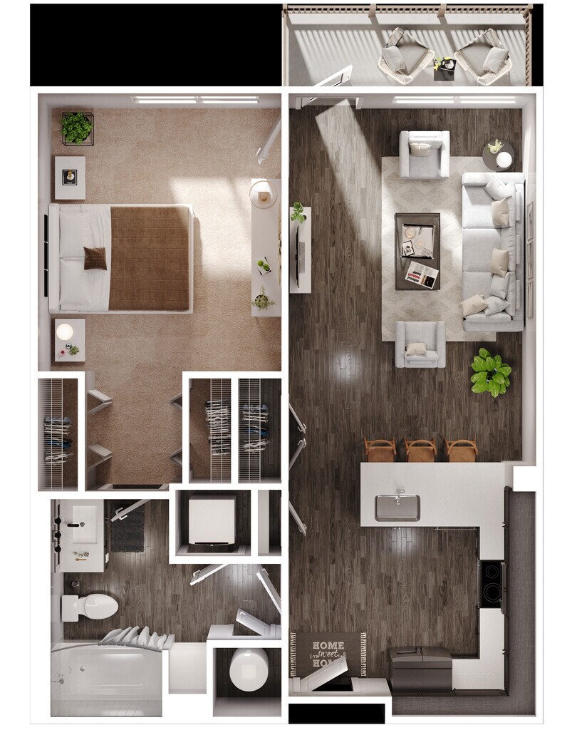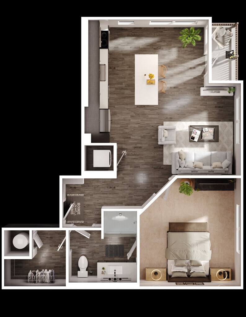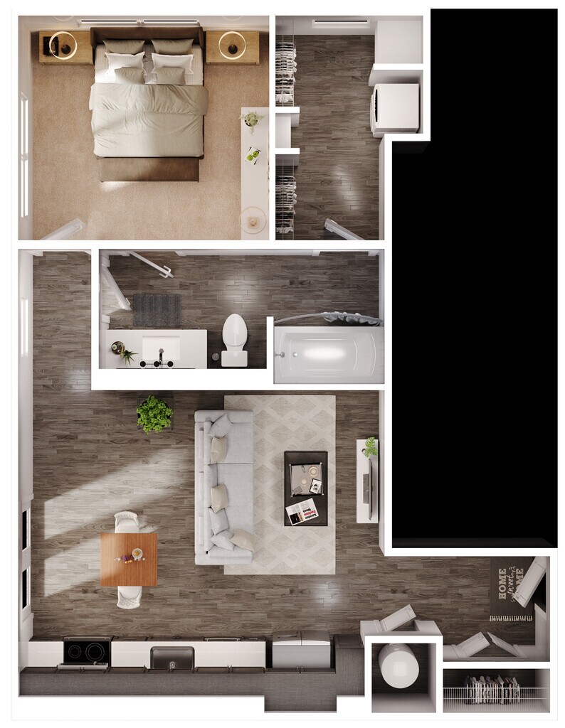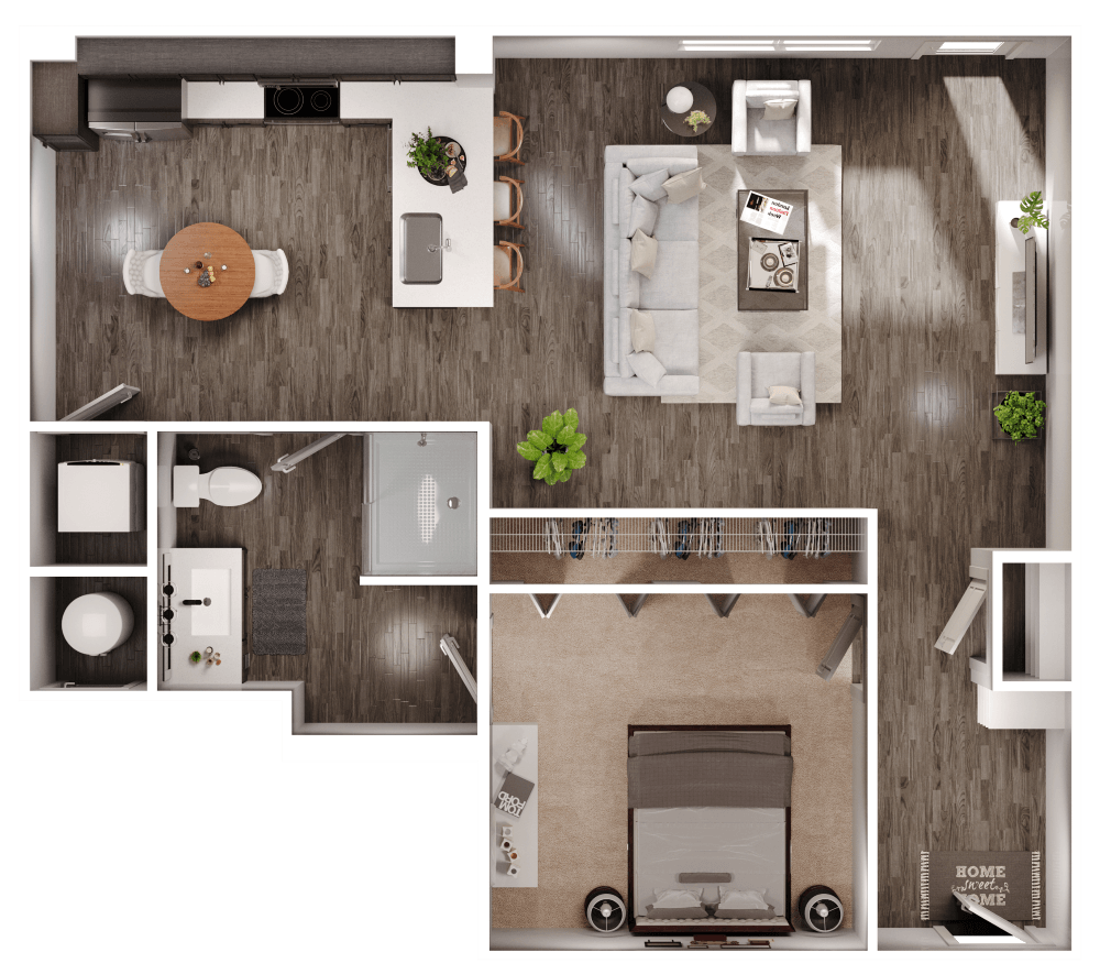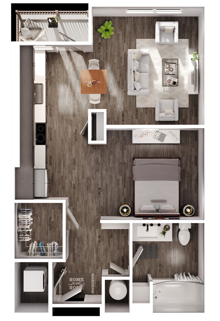 1 Dormitorio, 1 Baño, 727 pies²Disponible AhoraGalería del Modelo