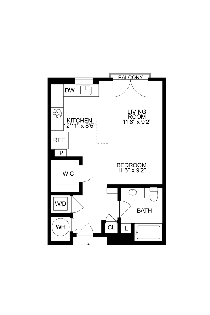 Estudio, 1 Baño, 563 pies²Disponible AhoraGalería del Modelo