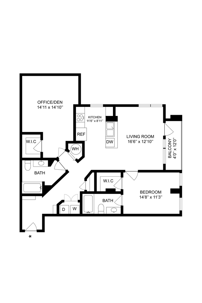 Modelo de apartamento: A1JLlame para Precios1 Dormitorio, 1 Baño, 972 sq ftDisponible Ahora![]()