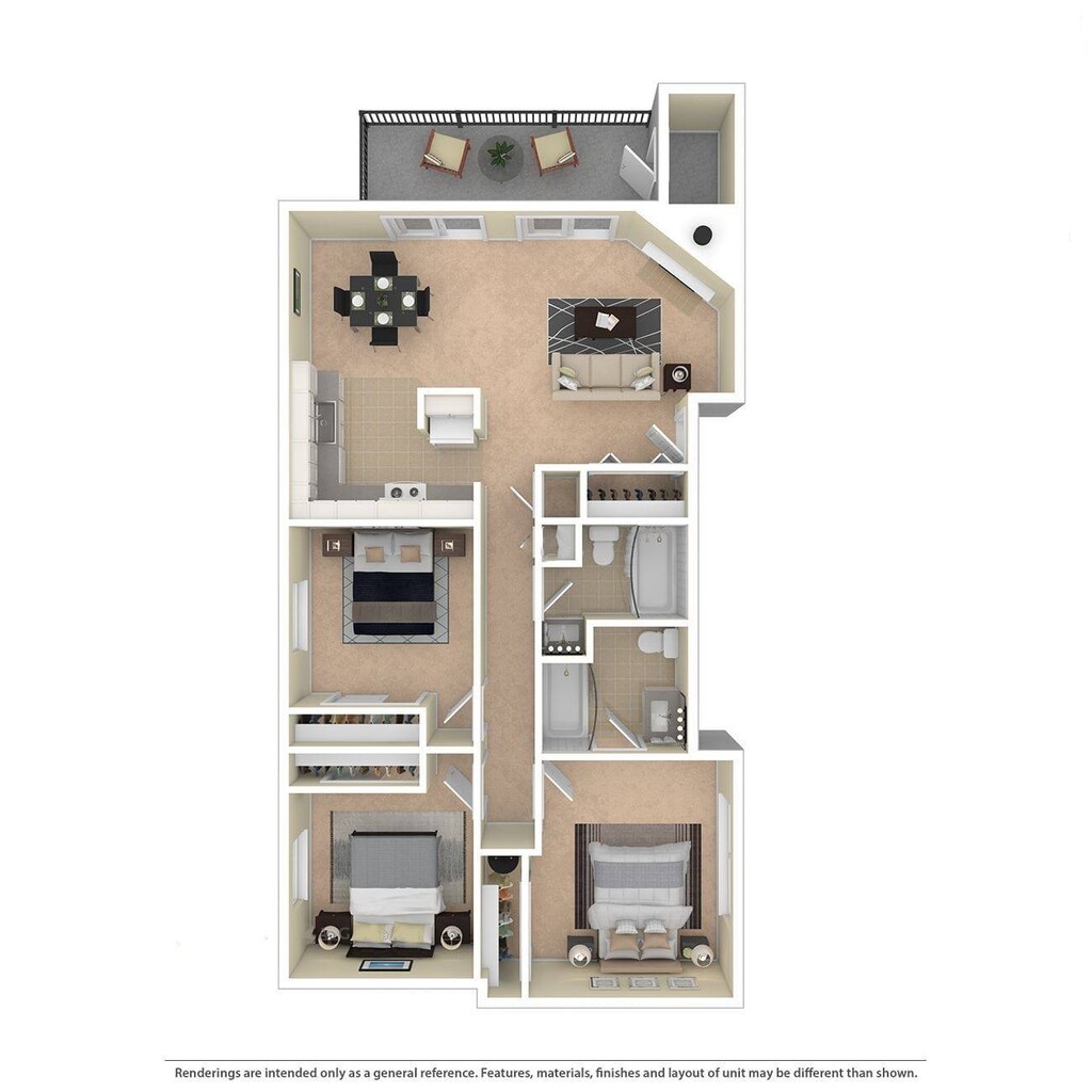 Modelo de apartamento: 3 Bedroom 2 BathroomDesde $1,9253 Dormitorios, 2 Baños, 1044 sq ftDisponible Ahora![]()