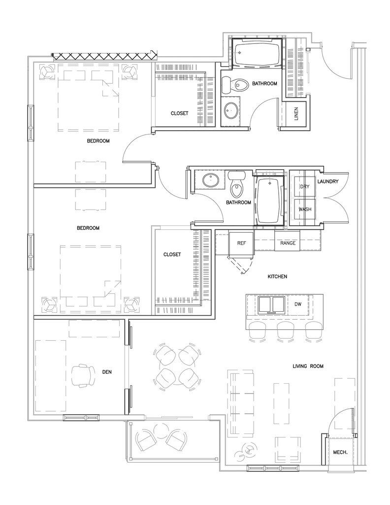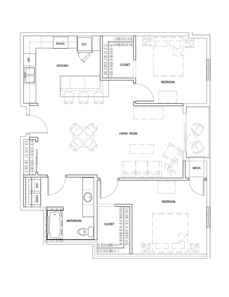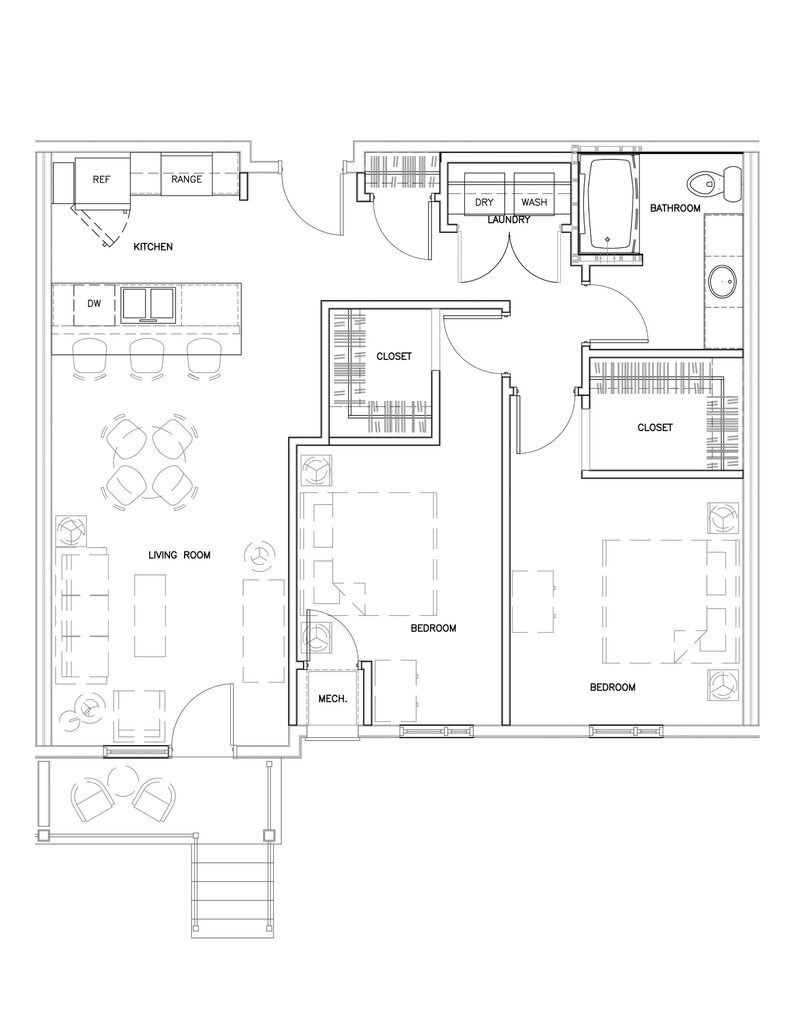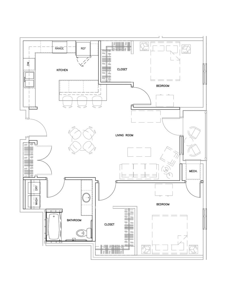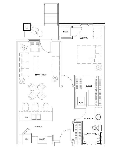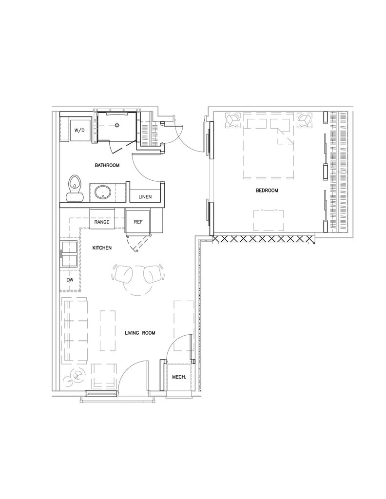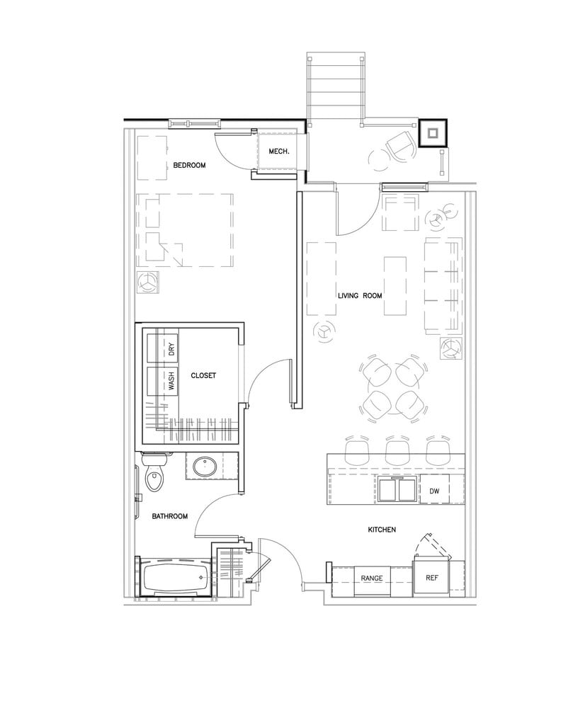 1 Dormitorio, 1 Baño, 745 pies²El más grandeEsta opción tiene las unidades más grandes para este modeloGalería del Modelo