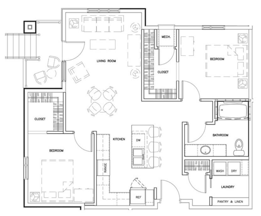 2 Dormitorios, 1 Baño, 1011 pies²Disponible AhoraGalería del Modelo