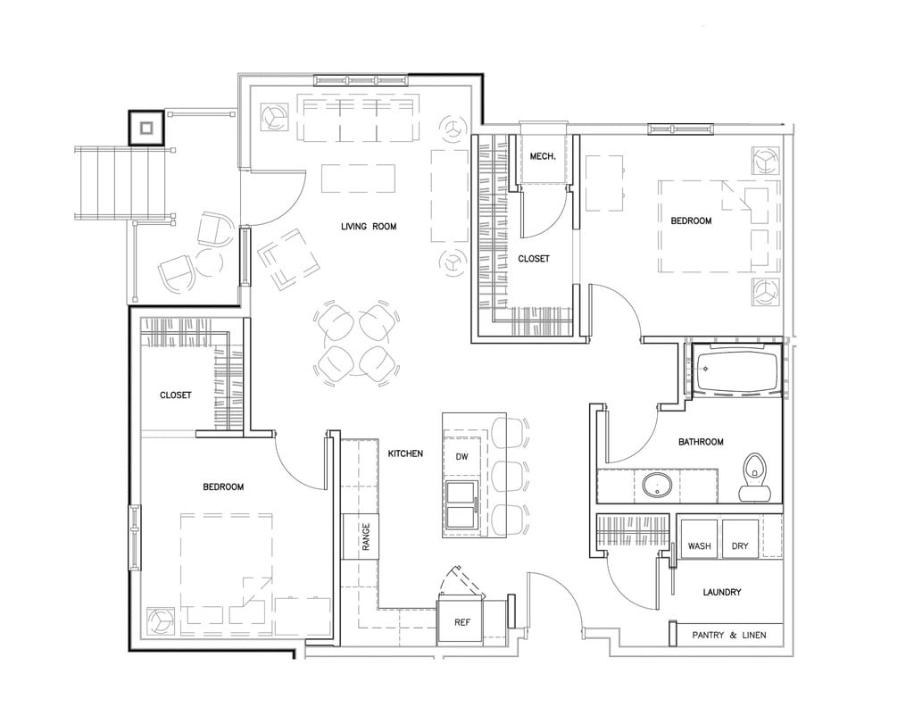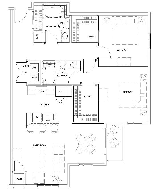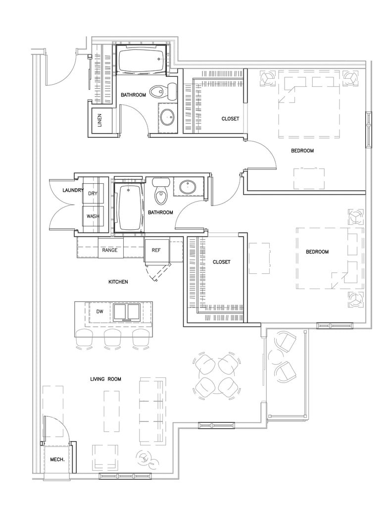 2 Dormitorios, 2 Baños, 1286 pies²El más grandeEsta opción tiene las unidades más grandes para este modeloGalería del Modelo