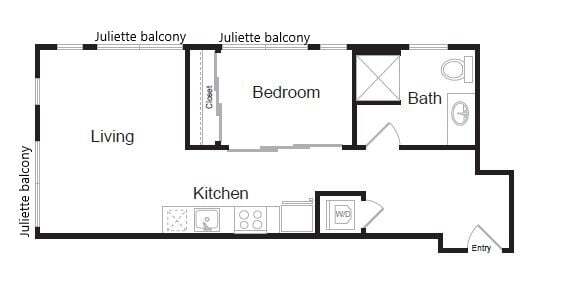 1 Dormitorio, 1 Baño, 449-604 pies²Disponible Oct 10Galería del Modelo