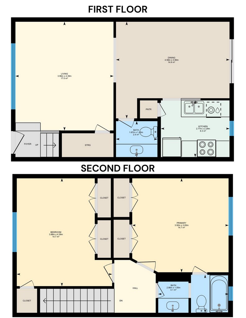 2 Dormitorios, 1 Baño, 800 pies²Galería del Modelo