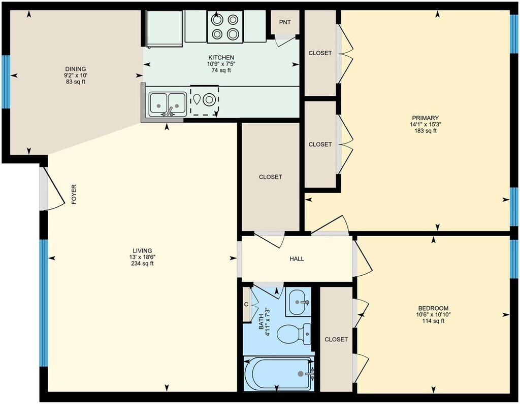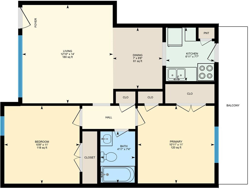 2 Dormitorios, 1 Baño, 900 pies²Galería del Modelo