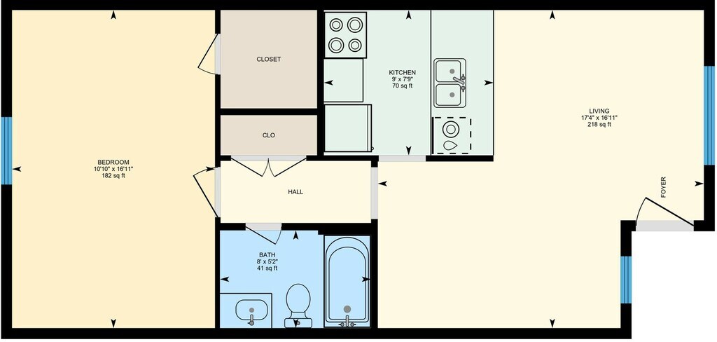 1 Dormitorio, 1 Baño, 550 pies²Galería del Modelo