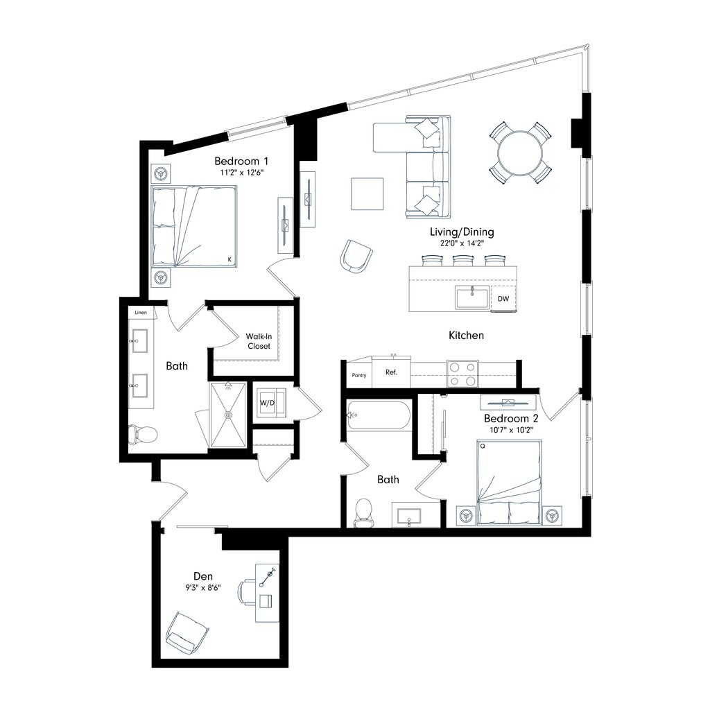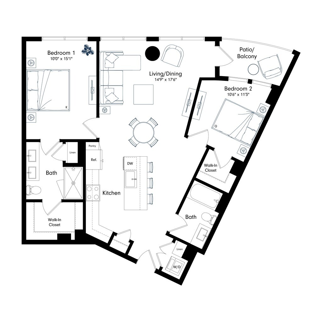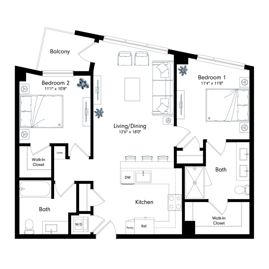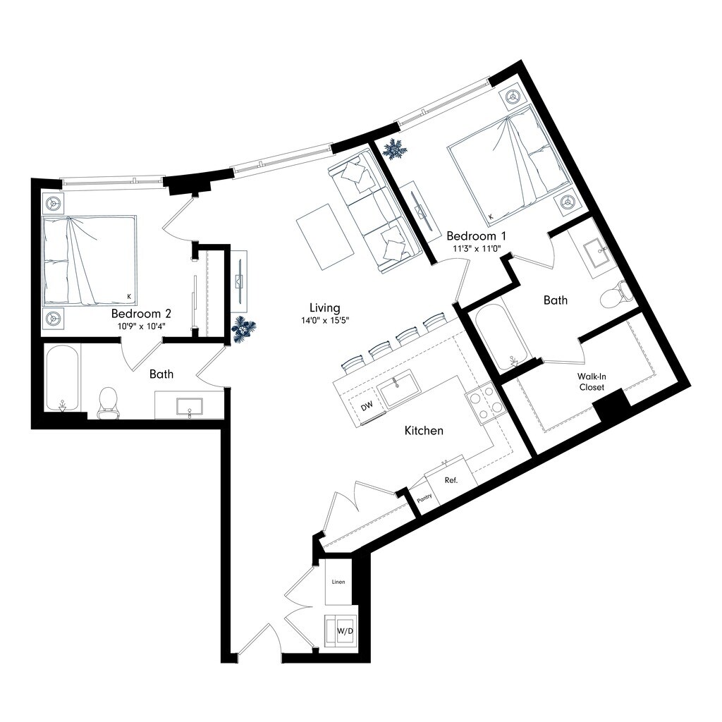 Modelo de apartamento: UA1Desde $2,5121 Dormitorio, 1 Baño, 596 sq ftDisponible AhoraLos planos son representaciones artísticas. Todas las dimensiones son aproximadas. El producto y las especificaciones reales pueden variar en tamaño o detalle. No todas las características están disponibles en cada vivienda en alquiler. Por favor, consulta con un representante para obtener más detalles.