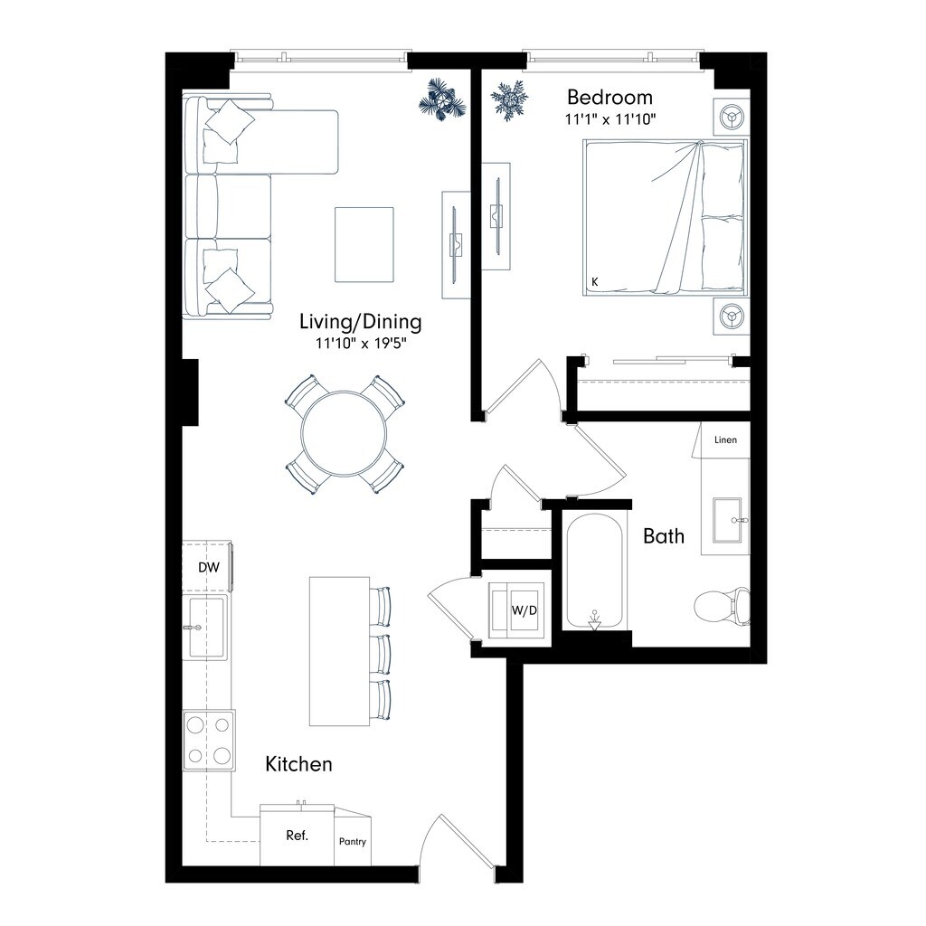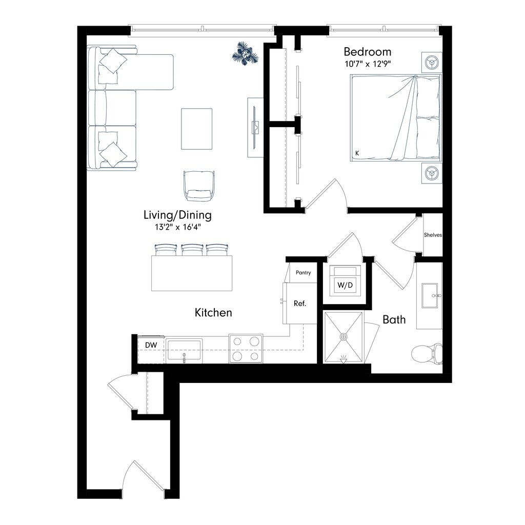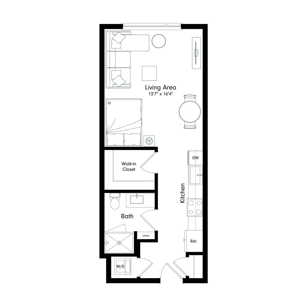 Modelo de apartamento: S2Desde $2,251Estudio, 1 Baño, 505 sq ftDisponible AhoraLos planos son representaciones artísticas. Todas las dimensiones son aproximadas. El producto y las especificaciones reales pueden variar en tamaño o detalle. No todas las características están disponibles en cada vivienda en alquiler. Por favor, consulta con un representante para obtener más detalles.