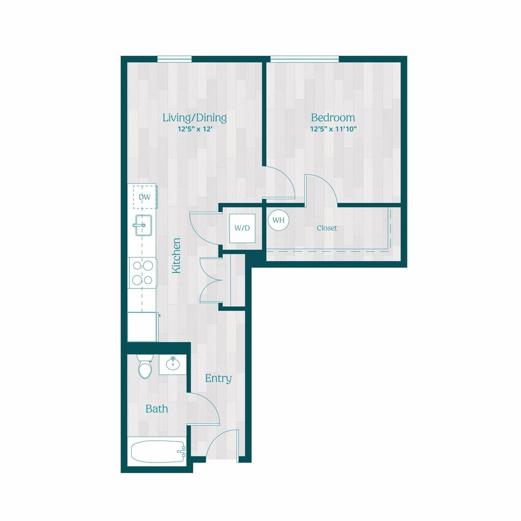 Modelo de apartamento: A1Desde $1,7201 Dormitorio, 1 Baño, 515 sq ftDisponible Ahora![]()