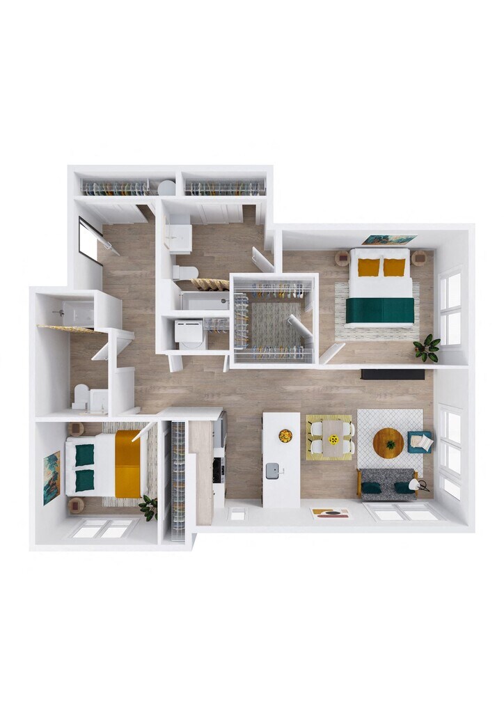 Modelo de apartamento: B4 MFTE$1,6501 Dormitorio, 1 Baño, 683 sq ftDisponible Ahora![]()