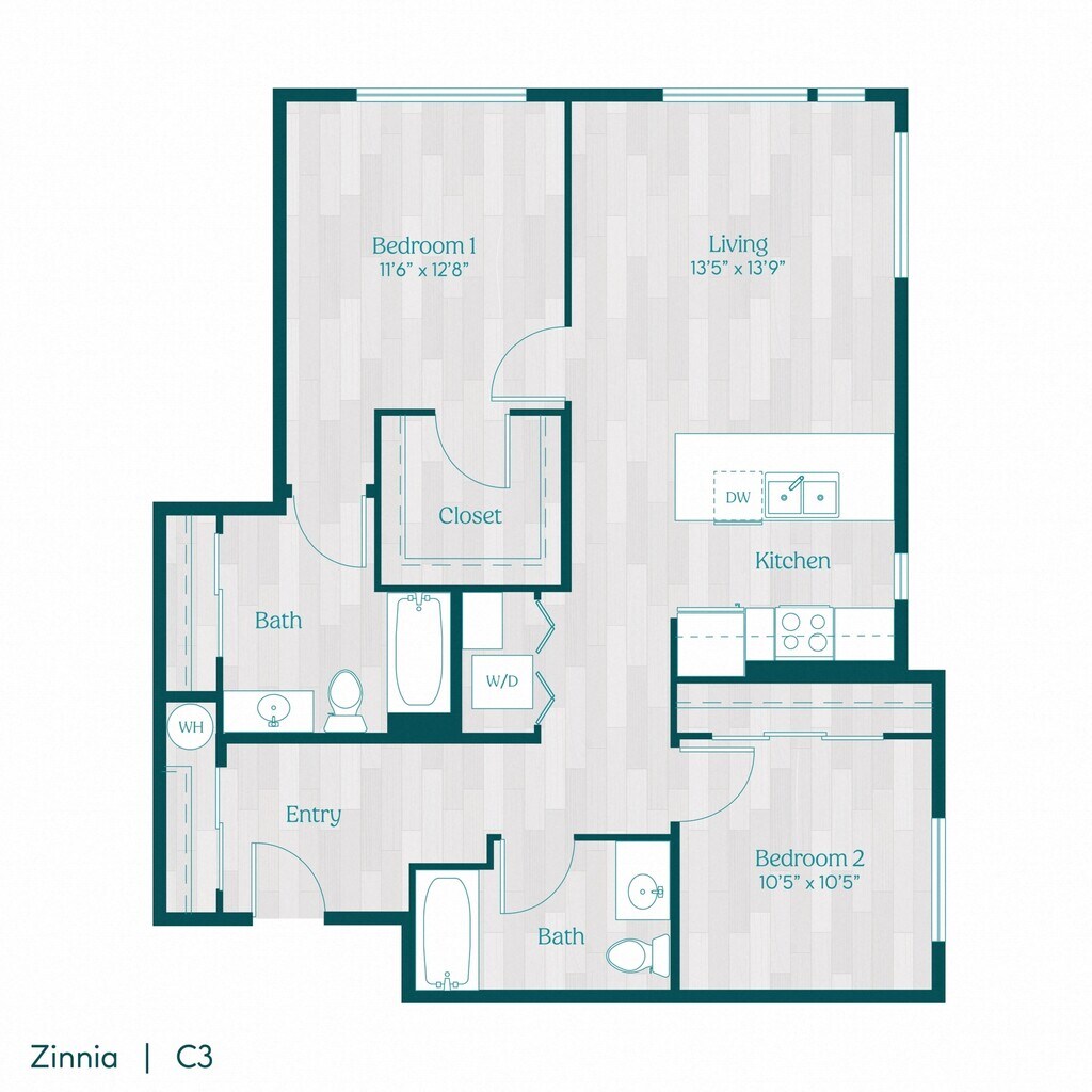 Zinnia ofrece apartamentos de Estudio a 2 Dormitorios desde $1,620 con 515–1,065 pies cuadrados. Aquí está el precio actual y la disponibilidad: