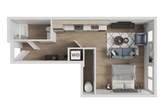 Modelo de apartamento: Studio A MFTE*Desde $1,375Estudio, 1 Baño, 549 sq ftDisponible April 7, 2026![]()