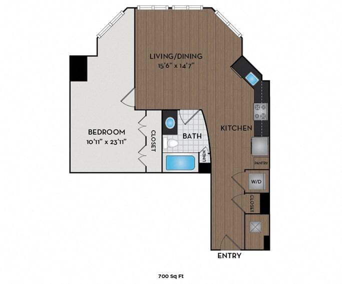 1 Dormitorio, 1 Baño, 700 pies²Precio Mensual TotalDisponible AhoraEl más baratoEsta opción tiene los precios más bajos para este modeloGalería del Modelo