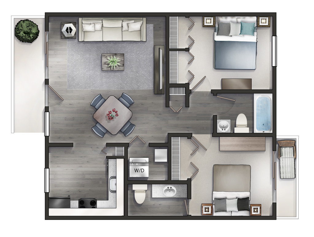 2 Dormitorios, 1 Baño, 730 pies²Disponible AhoraGalería del Modelo