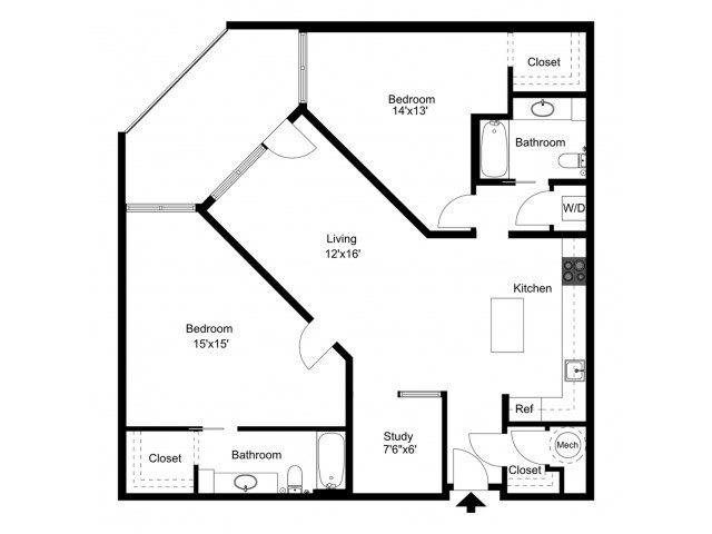 Modelo de apartamento: Black IrisDesde $1,1851 Dormitorio, 1 Baño, 669 sq ftDisponible Ahora![]()