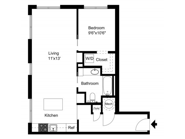 Estudio, 1 Baño, 591 pies²Disponible AhoraGalería del Modelo