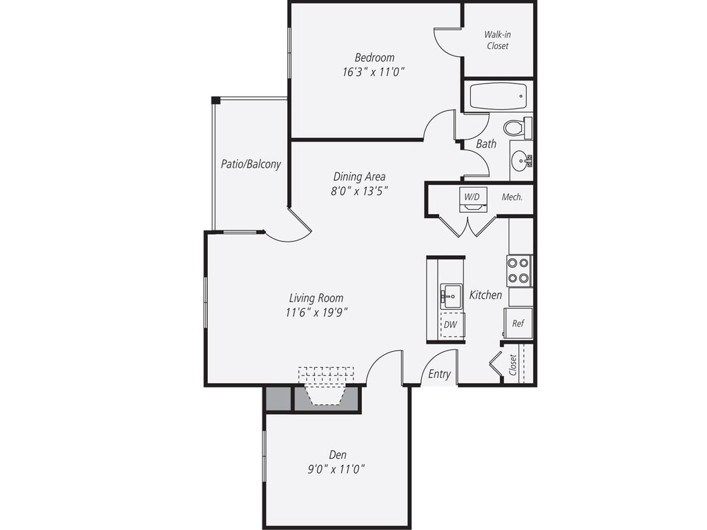 Modelo de apartamento: A1Desde $2,0601 Dormitorio, 1 Baño, 810 sq ftDisponible March 16, 2026Los planos son representaciones artísticas. Todas las dimensiones son aproximadas. El producto y las especificaciones reales pueden variar en tamaño o detalle. No todas las características están disponibles en cada vivienda en alquiler. Por favor, consulta con un representante para obtener más detalles.