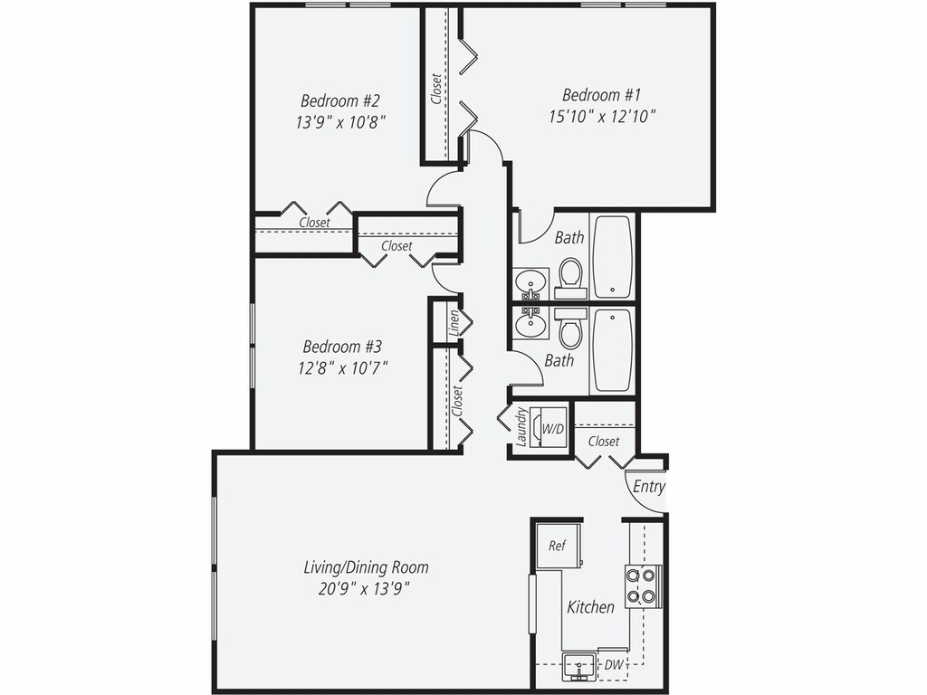 Modelo de apartamento: A3Desde $1,8001 Dormitorio, 1 Baño, 670 sq ftDisponible pronto![]()
