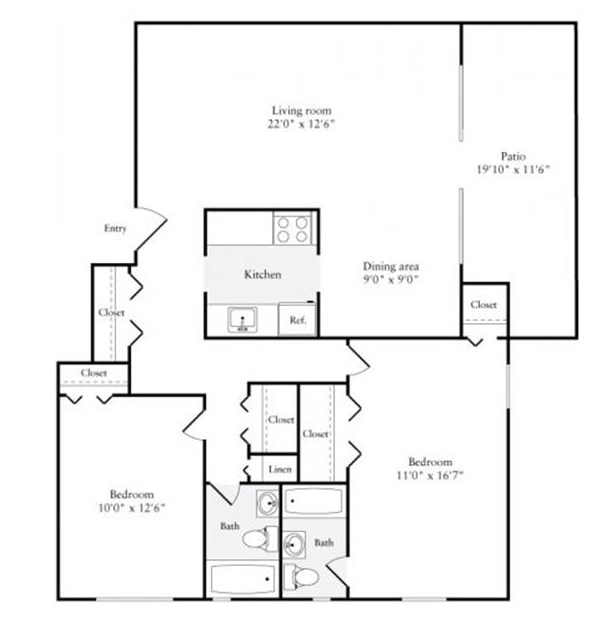Modelo de apartamento: 1100$2,6342 Dormitorios, 2 Baños, 1100 sq ftDisponible May 26, 2026![]()