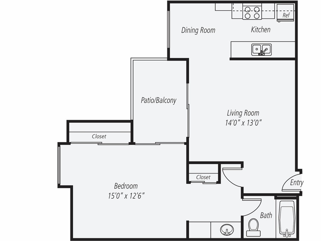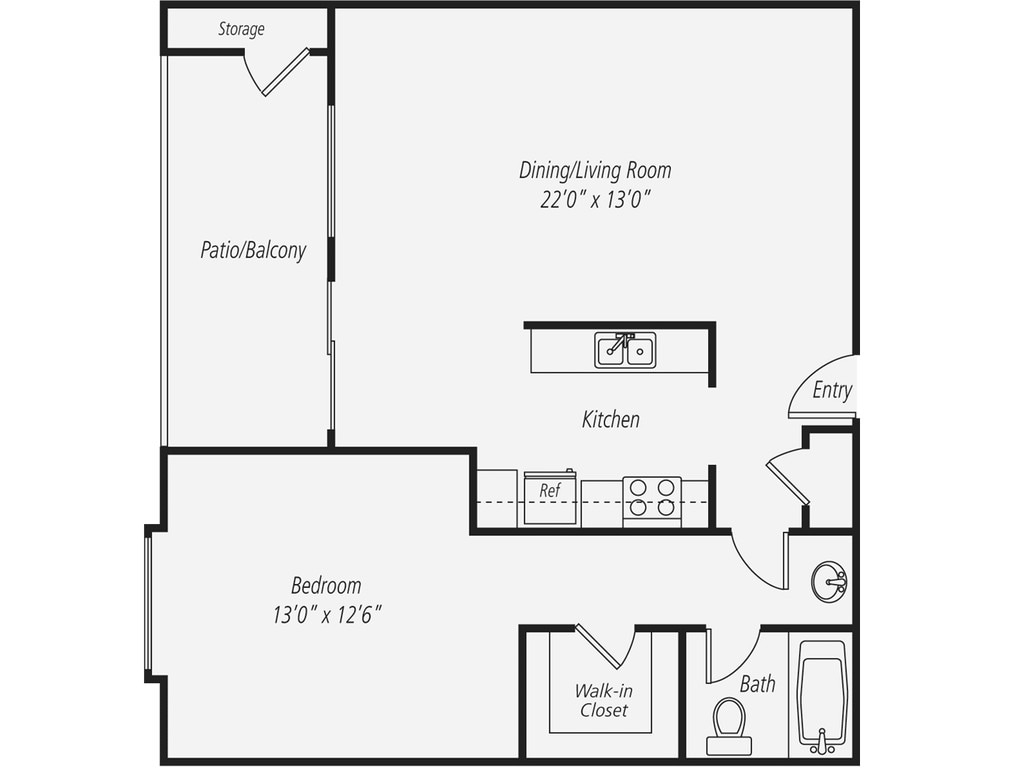 1 Dormitorio, 1 Baño, 726 pies²Disponible AhoraGalería del Modelo