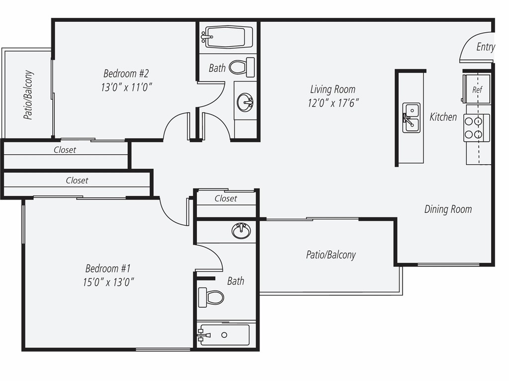 2 Dormitorios, 2 Baños, 1100 pies²Disponible Dec 2Galería del Modelo