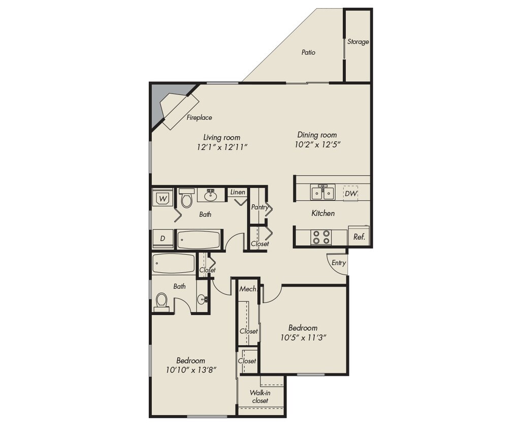 Modelo de apartamento: 2B1BaDesde $2,4902 Dormitorios, 1 Baño, 844 sq ftDisponible Ahora![]()