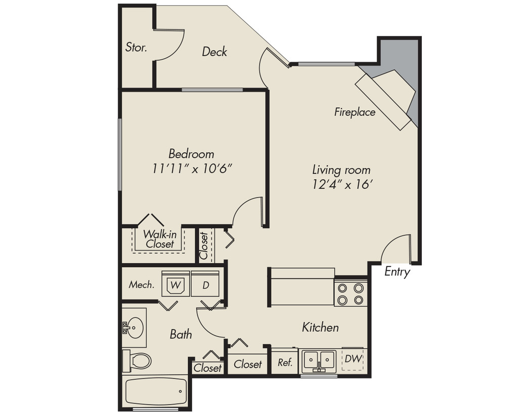 1 Dormitorio, 1 Baño, 565 pies²Disponible AhoraGalería del Modelo