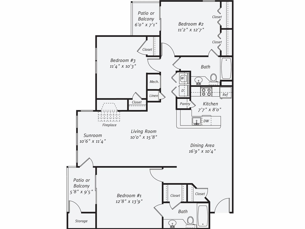 Modelo de apartamento: A2Desde $2,2431 Dormitorio, 1 Baño, 675 sq ftDisponible pronto![]()