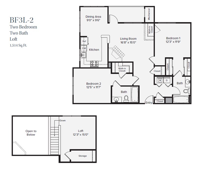 Modelo de apartamento: BF3Desde $2,9552 Dormitorios, 2 Baños, 1225 sq ftDisponible AhoraLos planos son representaciones artísticas. Todas las dimensiones son aproximadas. El producto y las especificaciones reales pueden variar en tamaño o detalle. No todas las características están disponibles en cada vivienda en alquiler. Por favor, consulta con un representante para obtener más detalles.
