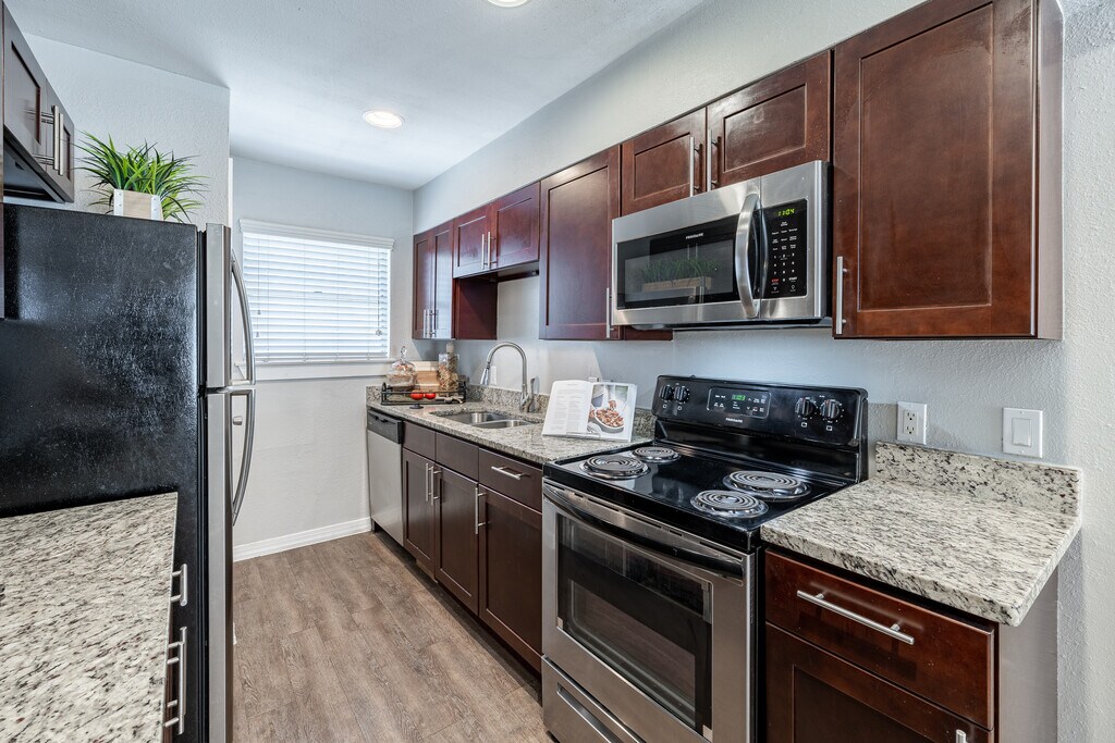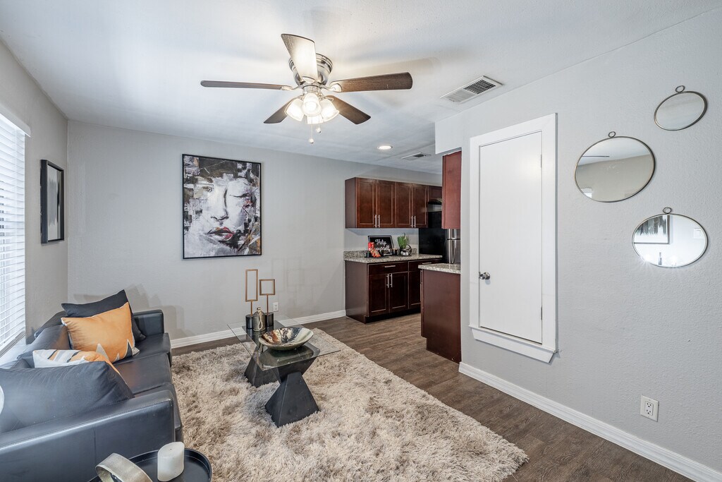 ¡Un bungalow relajado en Nexus! Todos los apartamentos tienen interiores recientemente renovados que muestran pisos de tablones de madera, gabinetes de espresso, encimeras de granito y accesorios de cocina actualizados. Nuestras hermosas cocinas gourmet se han actualizado con nuevos electrodomésticos de acero inoxidable que incluyen una cocina eléctrica autolimpiante, microondas, lavaplatos y refrigeradores libres de escarcha. Todos los apartamentos incluyen dos puertas de panel, persianas de dos pulgadas, nuevos accesorios de plomería y ventiladores de techo en las habitaciones y salas de estar. ¡Somos un complejo que admite mascotas! Nuestro hermoso complejo está convenientemente ubicado en Loop 410/IH35 entre Rittiman y Eisenhauer, cerca de los principales empleadores y excelentes tiendas y restaurantes. Estamos a menos de 15 minutos del centro de San Antonio, el hermoso Riverwalk, la histórica cervecería Pearl y los museos locales. También estamos ubicados a solo unos minutos de BAAMC y Fort Sam Houston. Llámanos hoy para hacer una cita y programar un recorrido. ¡Ven a ver por qué tantos llaman a Nexus Urban Living HOGAR!