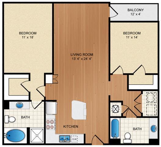 Modelo de apartamento: A51 Dormitorio, 1 Baño, 750 sq ftDisponible Ahora![]()