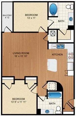 Modelo de apartamento: A31 Dormitorio, 1 Baño, 705 sq ftDisponible Ahora![]()