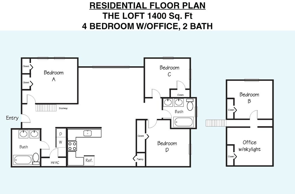 Modelo de apartamento: The Loft 4BD/2BA with Office - Residential4 Dormitorios, 2 Baños, 1400 sq ftNo Disponible![]()