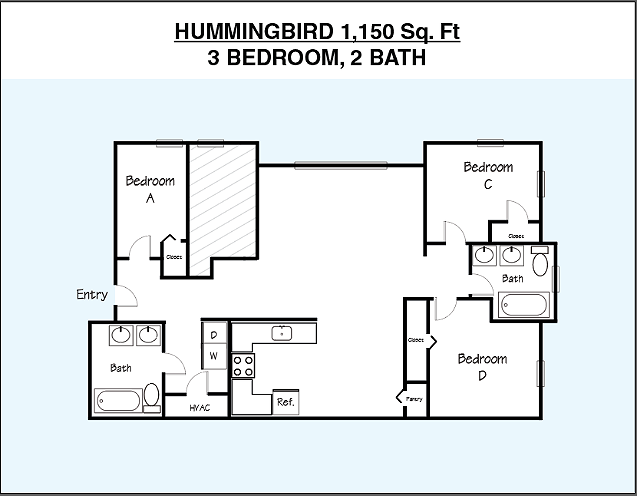 Modelo de apartamento: Hummingbird 3BD/2BA -Student Housing3 Dormitorios, 2 Baños, 1150 sq ftNo Disponible![]()