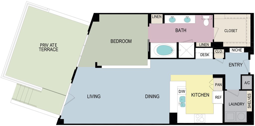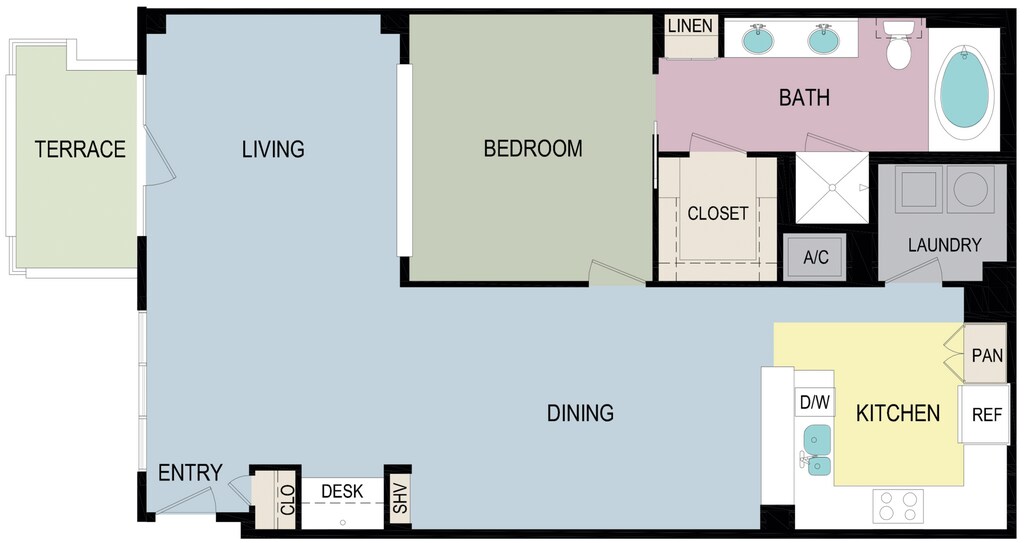 1E - Plano 1 Unidad de apartamento: 115Modelo de apartamento: 1E$3,5071 Dormitorio, 1 Baño, 1041 sq ftDisponible AhoraPlano: 1A