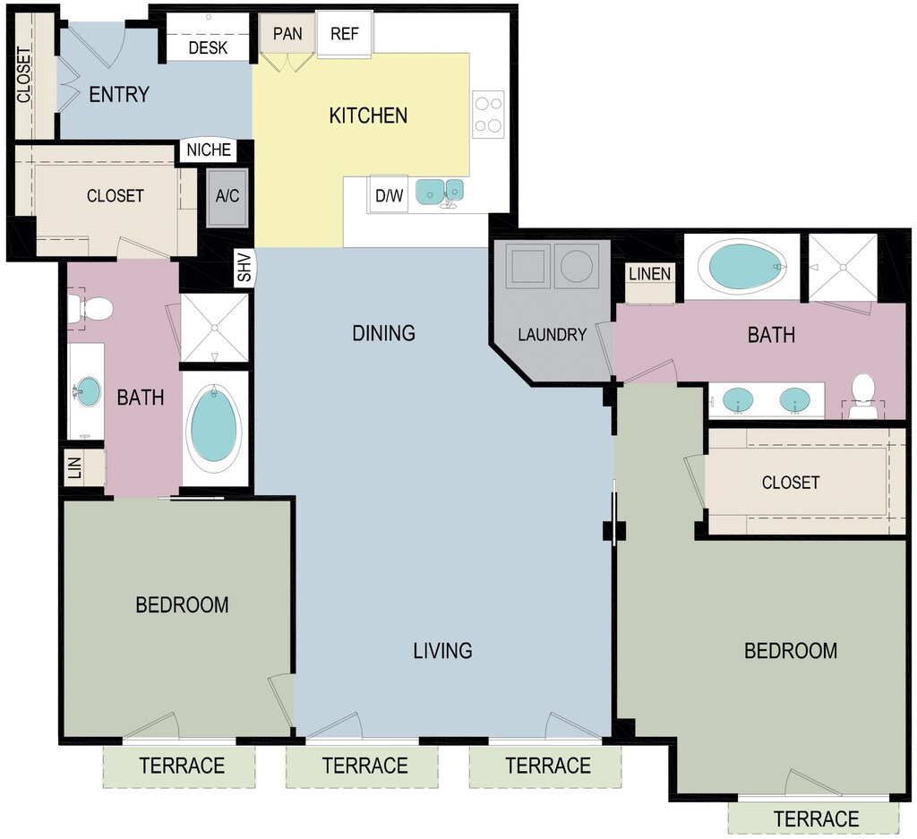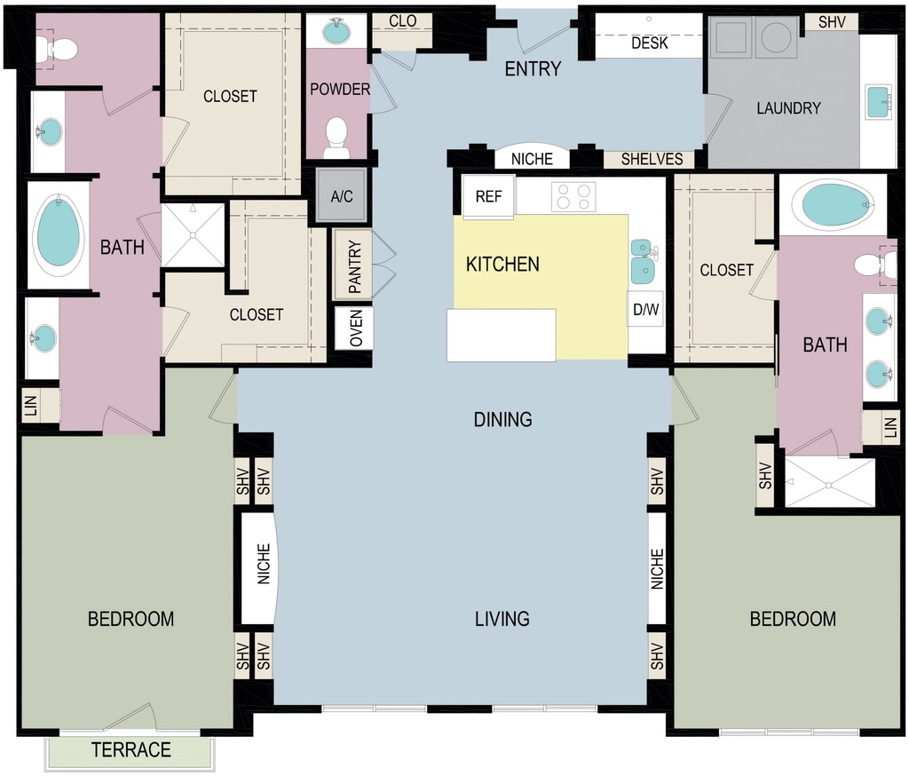 Modelo de apartamento: 1BDesde $3,3921 Dormitorio, 1 Baño, 988 sq ftDisponible AhoraLos planos son representaciones artísticas. Todas las dimensiones son aproximadas. El producto y las especificaciones reales pueden variar en tamaño o detalle. No todas las características están disponibles en cada vivienda en alquiler. Por favor, consulta con un representante para obtener más detalles.