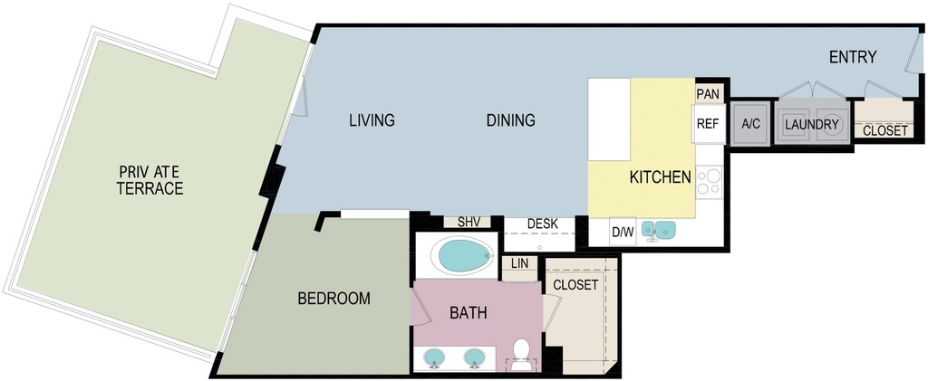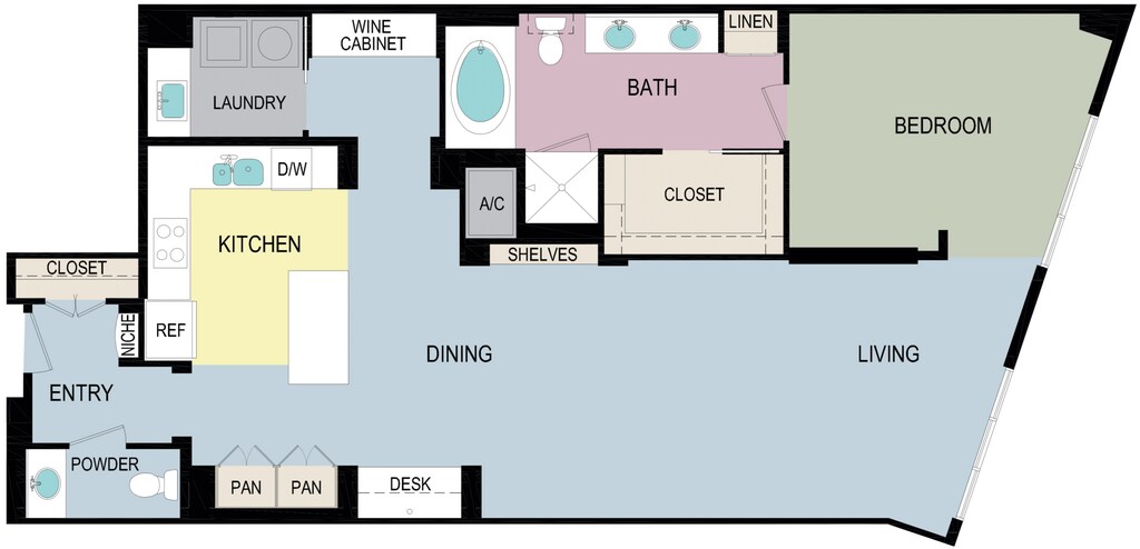 Modelo de apartamento: 1D$3,6021 Dormitorio, 1 Baño, 1011 sq ftNo DisponibleLos planos son representaciones artísticas. Todas las dimensiones son aproximadas. El producto y las especificaciones reales pueden variar en tamaño o detalle. No todas las características están disponibles en cada vivienda en alquiler. Por favor, consulta con un representante para obtener más detalles.