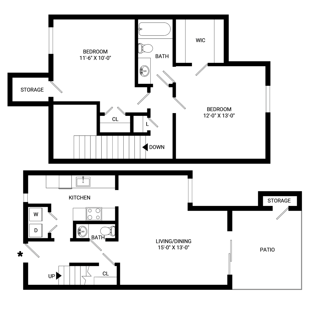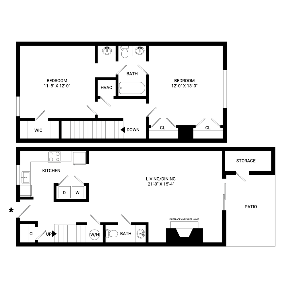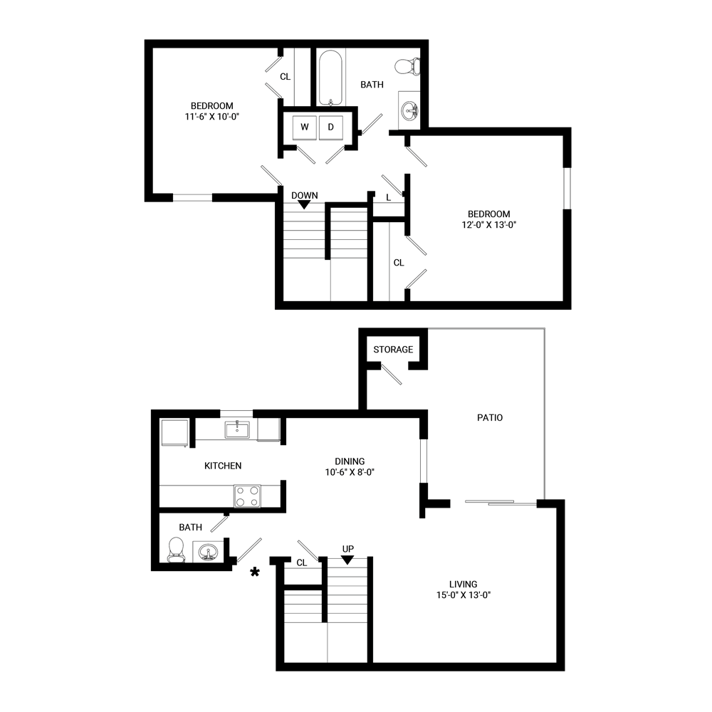 Modelo de apartamento: Laurel TownhomeDesde $1,2092 Dormitorios, 2.5 Baños, 1150 sq ftNo DisponibleLaurel Townhome - Plano 1 3 Dormitorios