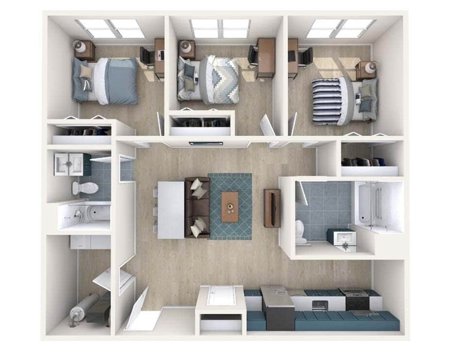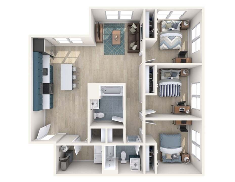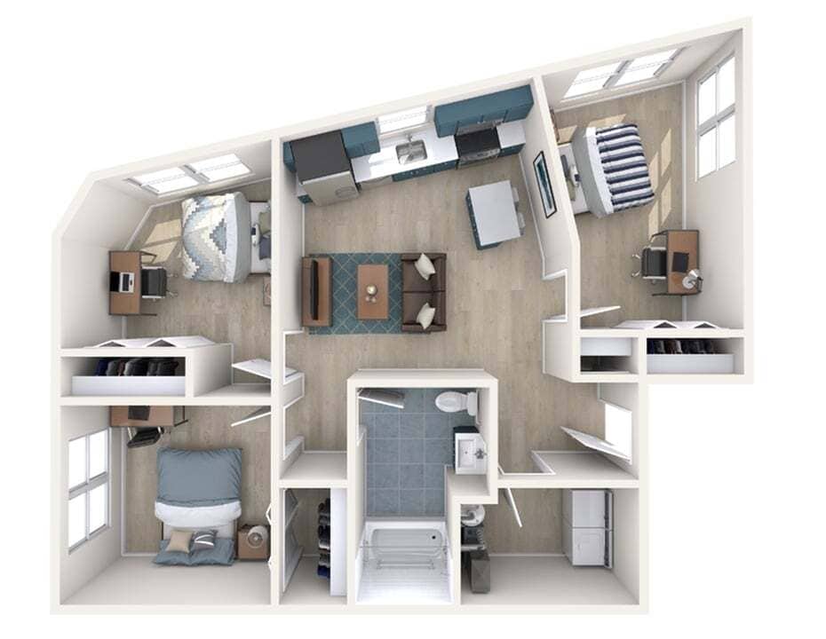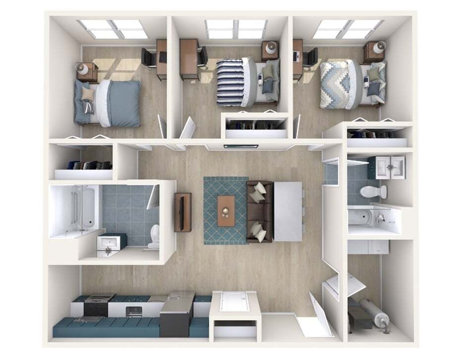 Modelo de apartamento: C3Desde $9893 Dormitorios, 1 Baño, 838 sq ftDisponible Ahora![]()