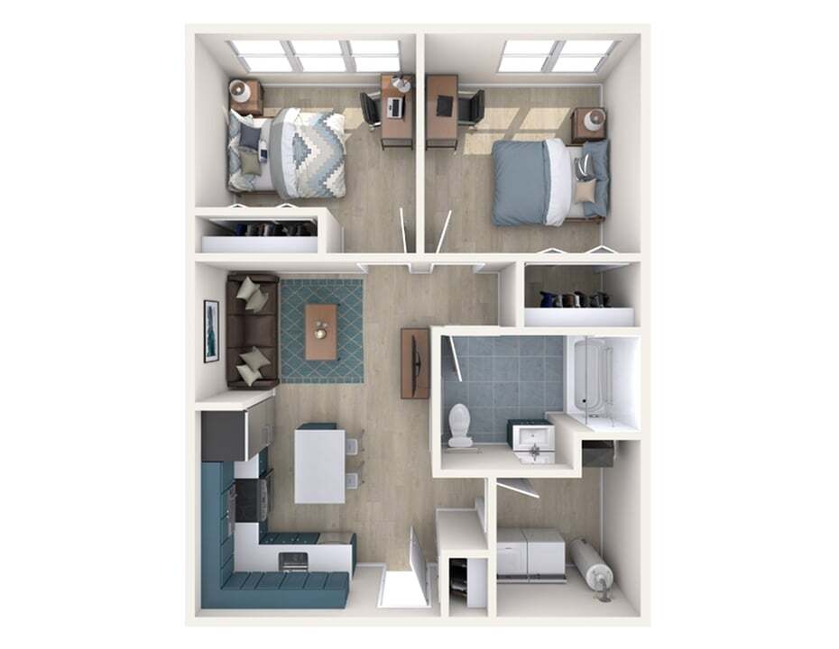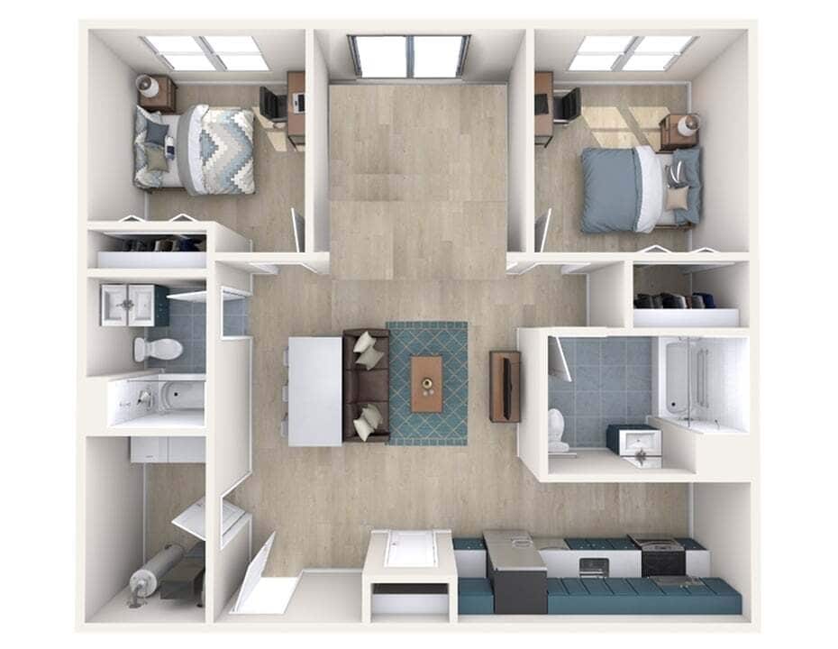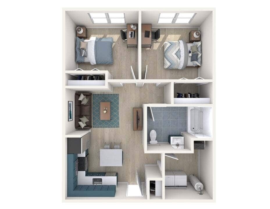 Modelo de apartamento: B5Desde $1,1242 Dormitorios, 1 Baño, 706 sq ftDisponible Ahora![]()