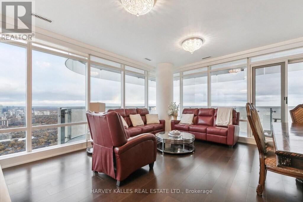 One Bloor Street East. The most iconic high end condominium in downtown Toronto. Grand 2+1 bedroom 3 bathroom corner residence on the 68th floor. **Partially furnished.(available unfurnished as well) 1440 square feet of luxurious living + massive wrap around balcony with breathtaking views of the City skyline and Lake Views. Direct access to Yonge/Bloor subway line. Many upgrades and custom cabinetry,hardwood floors,top of the line appliances,granite counters & more. Included 1 underground parking spot & 1 locker. **Partially furnished. Just move in!!! (id:52069) ID#: 1406558