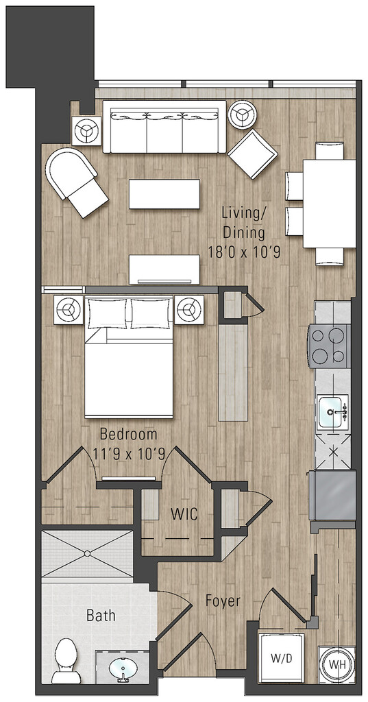 Line 18 - Floorplan 1 Apartment Unit: 618Apartment Model: Line 18$2,5501 Bedroom, 1 Bath, 640 sq ftAvailable NowLine 09