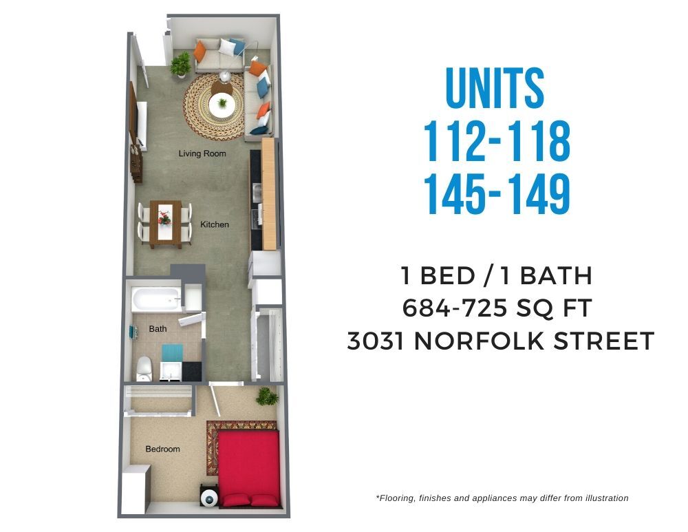 Unit: 145 - Image 1 Apartment Unit: 170Apartment Model: Norfolk One Bed$1,4791 Bedroom, 1 Bath, 515 sq ftAvailable January 14, 2026![]()