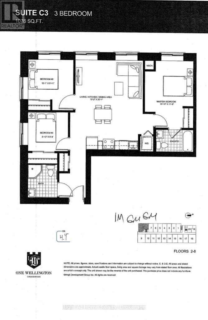 Unit: 308Model: 1 Wellington St$2,5003 Bedroom, 1 Bath, sq ftAvailable Now