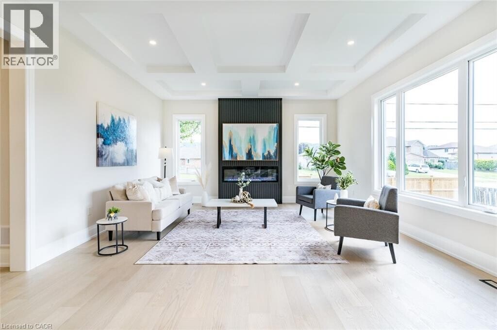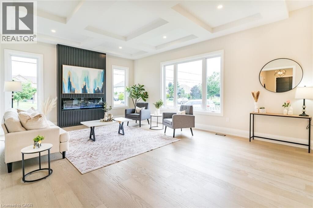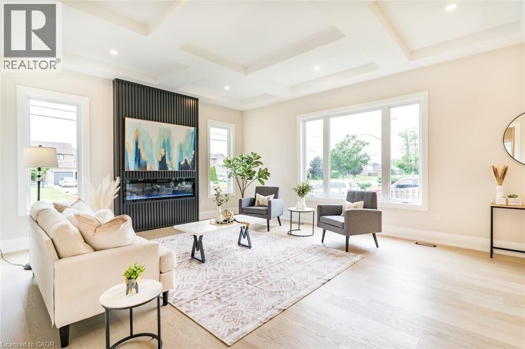 Luxurious Modern Home for Lease Welcome to a stunning newly built detached two-story home,located in a desirable neighborhood on a spacious lot where modern elegance meets comfort in every detail. This exquisite residence offers a sleek,modern kitchen equipped with top-of-the-line smart appliances,cabinets featuring convenient drawers,and a walk-in pantry,perfect for any culinary enthusiast. Entertain with ease in the spacious open-concept living room,boasting a sophisticated coffered ceiling,an electric fireplace,and abundant natural light that pours in,creating a warm and inviting atmosphere for gatherings and relaxation. The main floor features soaring 10ft ceilings and includes a private office with elegant 8ft doors,ideal for work,study,or quiet retreat,plus a convenient laundry room. The second floor offers a comfortable 9ft ceiling height throughout,enhancing the sense of space. Upstairs,retreat to the tranquility of a large primary bedroom boasting a walk-in closet and a luxurious 5-piece ensuite bathroom. Accommodation is ample with a second bedroom featuring its own 3-piece bathroom and two additional bedrooms sharing a 5-piece bathroom. Adding versatility,the finished basement boasts a 9ft ceiling and a handy 2-piece bath. Step outside to the meticulously landscaped outdoor space,complete with lush grass and a covered patio featuring a BBQ gas hookup. Additional upscale features include oak stairs with iron spindles,upgraded lighting,a wired security system,hard-wired Wi-Fi access points on each level,and rough-in for a central vacuum system,all adding to the overall allure and functionality. This beautiful home is minutes to the QEW,groceries,schools,and the future Go Station. (id:52069) ID#: 2076355