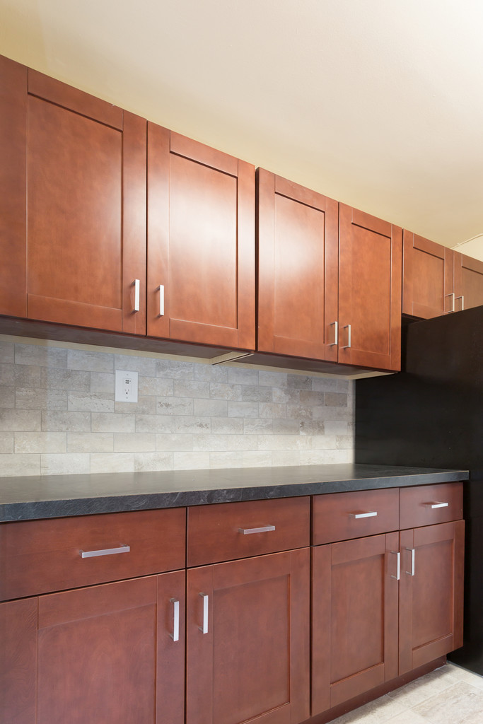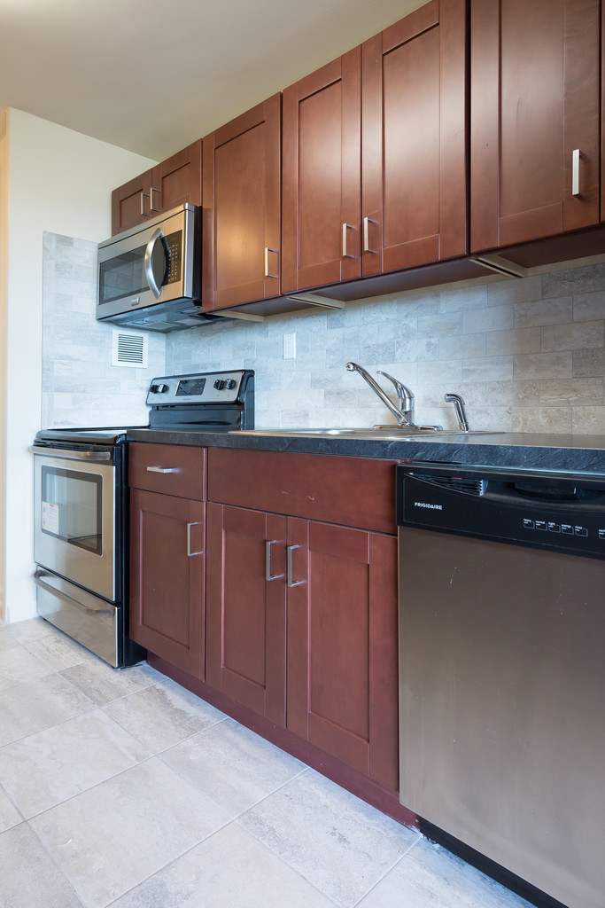 - Renovated kitchens available featuring white oak cabinets, microwave and ceramic tile