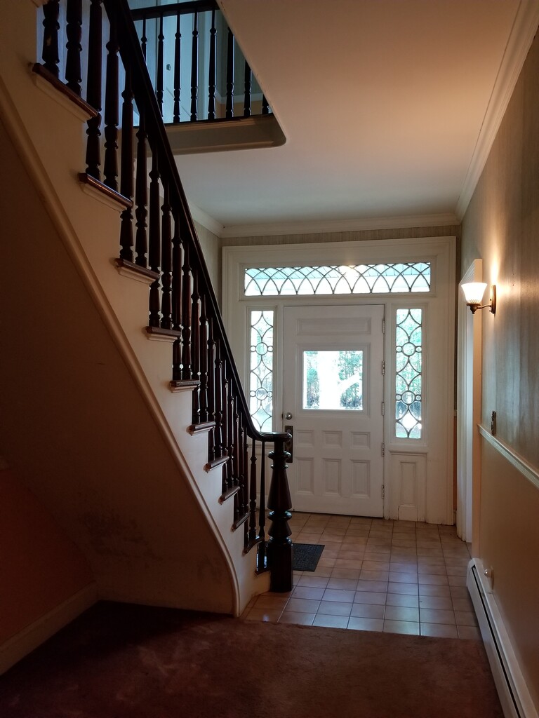 Beautifully renovated 2 bedroom apartment on the 1st floor of a very well maintained, stately older home on a 1 acre lot. This large, bright apartment has retained so much of it's historic Victorian charm with intricate hardwood floors, tall ceilings and floor to ceiling windows, a beautiful marble fireplace and dazzling ceiling molding and chandeliers. The Master BR has a large bay window with plenty of closet and storage space. In addition to a large 2nd bedroom with huge closets, there is a dining room, living room and office/den. There is new paint, lighting fixtures and window blinds. The large galley Kitchen and Bath have been updated with new flooring and all new fixtures including new stainless steel appliances (Stove, refrigerator and dishwasher), along with granite countertops. Stackable Washer/Dryer hook-up is available. Heat is included in the rent along with 2 covered parking spots. Property Manager and Security cameras are on the premises. Property is less than 10 minutes from Rte. 395.