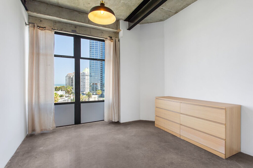 Two-bedroom one bath luxury rental condominium in the Royal Palms with exposed concrete ceilings and polished concrete floors in beautiful downtown Long Beach. It features a brand-new updated kitchen with quartz countertops, stainless steel appliances, and soft-closing cabinetry. Bedrooms include brand new window coverings, updated ceiling fans and air conditioning in the master bedroom. The bathroom has beautiful subway tiling, a large vanity sink, a light up mirror, and floating shelves over the toilet. Unit comes with fridge, air conditioning throughout, heat reflective and privacy tint all around, and a gorgeous open concept. Luxury building amenities include – 1) Pool - beautiful pool area with lounge chairs to relax and enjoy the sun, 2) On-Site Security - security monitors the building overnight with routine walkthroughs and front door presence so you feel safe and secure, 3) Keyless Entry - doors are being upgraded so there will be no need to take your keys, just a slim fob that opens doors with a tap, 4) Redesigned lobby - communal spaces are kept up-to-date to ensure a pleasant experience, 5) Bike Storage - securely store your bike in one of our bike rooms, 6) Recreation room - located next to the pool, the rec room is available for rent. Located in the East Village Arts District of Long Beach, The Royal Palms is an 11-story high rise luxury rental community located at 100 Atlantic Avenue in Long Beach, California. Built in 1957-58 and designed by architects Francis O. Merchant and J. Richard Shelley, the Royal Palms is a fixture of the East Village Arts district and a preeminent example of mid-century modern architecture in Long Beach. Comprising a total of twelve stories and 164 units. Residents enjoy walking distance to a veritable smorgasbord of fine restaurants, the beach, boutique shops/eateries of Shoreline Village, the Pike, Pine Avenue, world class Aquarium of the Pacific, and we’re just getting started! Located next to downtown Long Beach, Carnival Cruise Line, The Marina, Shoreline Village, the Queen Mary, and The Harbor! This high-rise condominium tower is walking distance from the Pike Outlets, museums, parks, and restaurants. Perched on the edge of the ocean, Downtown Long Beach merges the urban lifestyle of Los Angeles with a distinctly laid-back beach town vibe. The local dining scene is full of your next favorites, especially if you love seafood. The East Village Arts District cultivates the neighborhood’s creative side, and numerous specialty galleries and performance venues abound. 100 Atlantic Avenue has a Walk Score of 97 out of 100. This location is a Walker’s Paradise so daily errands do not require a car. 100 Atlantic Avenue is a six-minute walk from the Metro A Line (Blue) at the 1st Street Station stop. Nearby parks include Victory Park, Harvey Milk Park and Rainbow Lagoon Park. Drake Real Estate Group | Welcome home | Schedule your private viewing today | UNIT MIX : Two Bedroom/ One Bathroom | 800sqft INTERIOR : Spacious Open Floor Plan - Heating - Concrete Flooring - Recessed Lighting - KITCHEN : Modern Designer Cabinetry - White Stone Quartz Countertops - Designer Stainless-Steel Appliances - Refrigerator - Range w/ Oven - Microwave - Open Kitchen Space Layout APPLIANCES : Designer Stainless-Steel Appliances includes : Refrigerator - Cooktop Range - Oven - Microwave BATHROOM : Tiled Shower and Bath - Glass Shower Doors - Oversized Vanity Mirror PROPERTY INFORMATION : EXTERIOR : Newly Modernized Façade LAUNDRY : Community Washer & Dryer PARKING : Carport (but there’s a waiting list) - there is monthly parking around the area where you can park your vehicle.