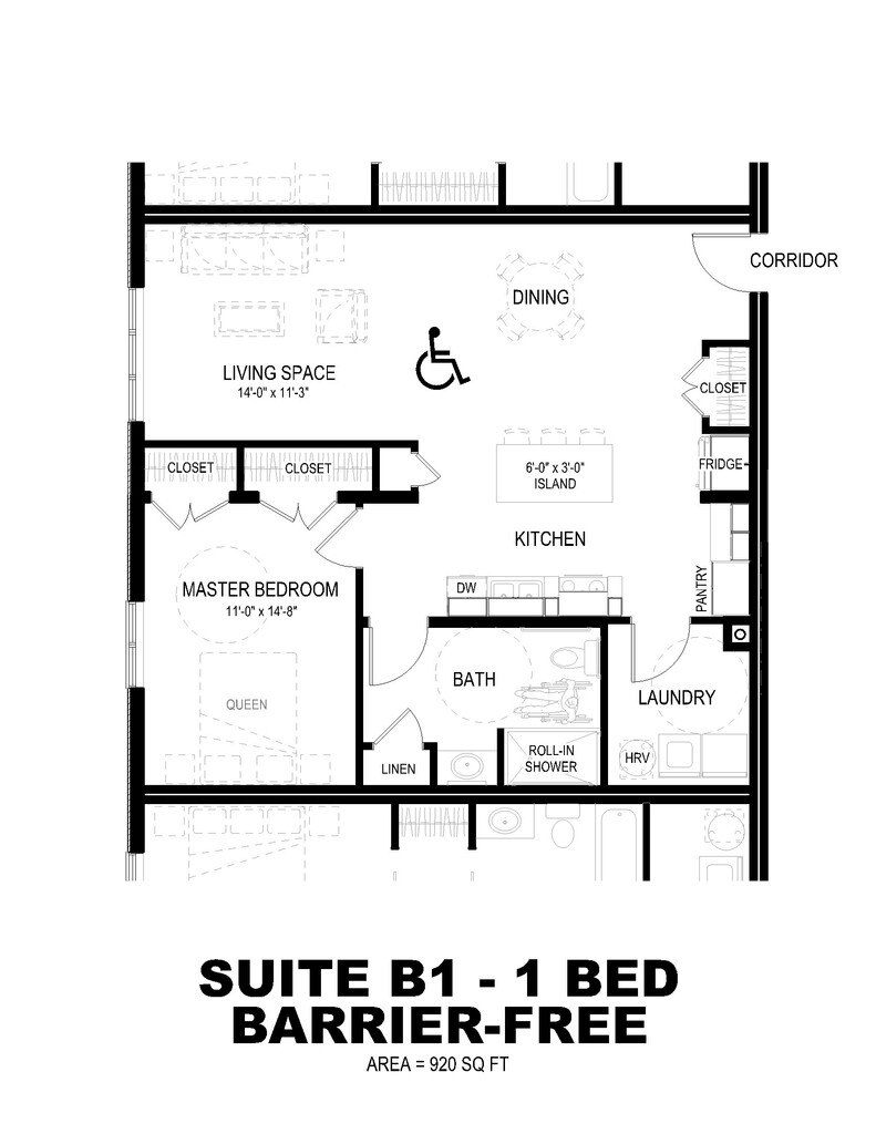 Suite B1 - Wheelchair Accessible Unit - Floorplan 7 2 Bedrooms